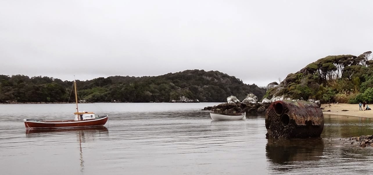 The Norwegian link with Stewart Island started late 1923 after a successful application by the Rosshavet Company for a whaling licence in the Ross Sea area. To meet inspection and compliance requirements the boats over-wintered here, initially at Little Glory Cove and Bravo Island, before a more permanent repair base was started in 1927 at Price's Inlet and called Kaipipi Shipyard. The base was only fully functional in the winters of 1927 to 1931; there was no whaling in the 1931-32 summer and the fleet did not return to New Zealand in 1933. The base was dismantled and mostly cleared by August 1939.